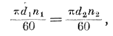 Окружные скорости колес будут равны и тогда, когда диаметр колеса 1 не будет равен диаметру колеса 2, т. е. V1 = V2, но число оборотов колес будет неодинаково: n1≠ n2, что можно выразить так:
